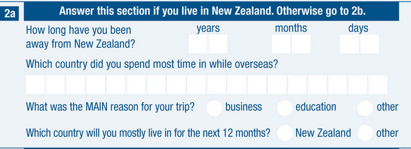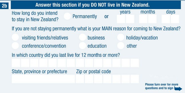 对于入境卡里“2a”、“2b”两项,大家不要疑惑,“2a”适用于新西兰住民填写,“2b”是我们国内人员经常填写的,根据自身情况,二选一即可。