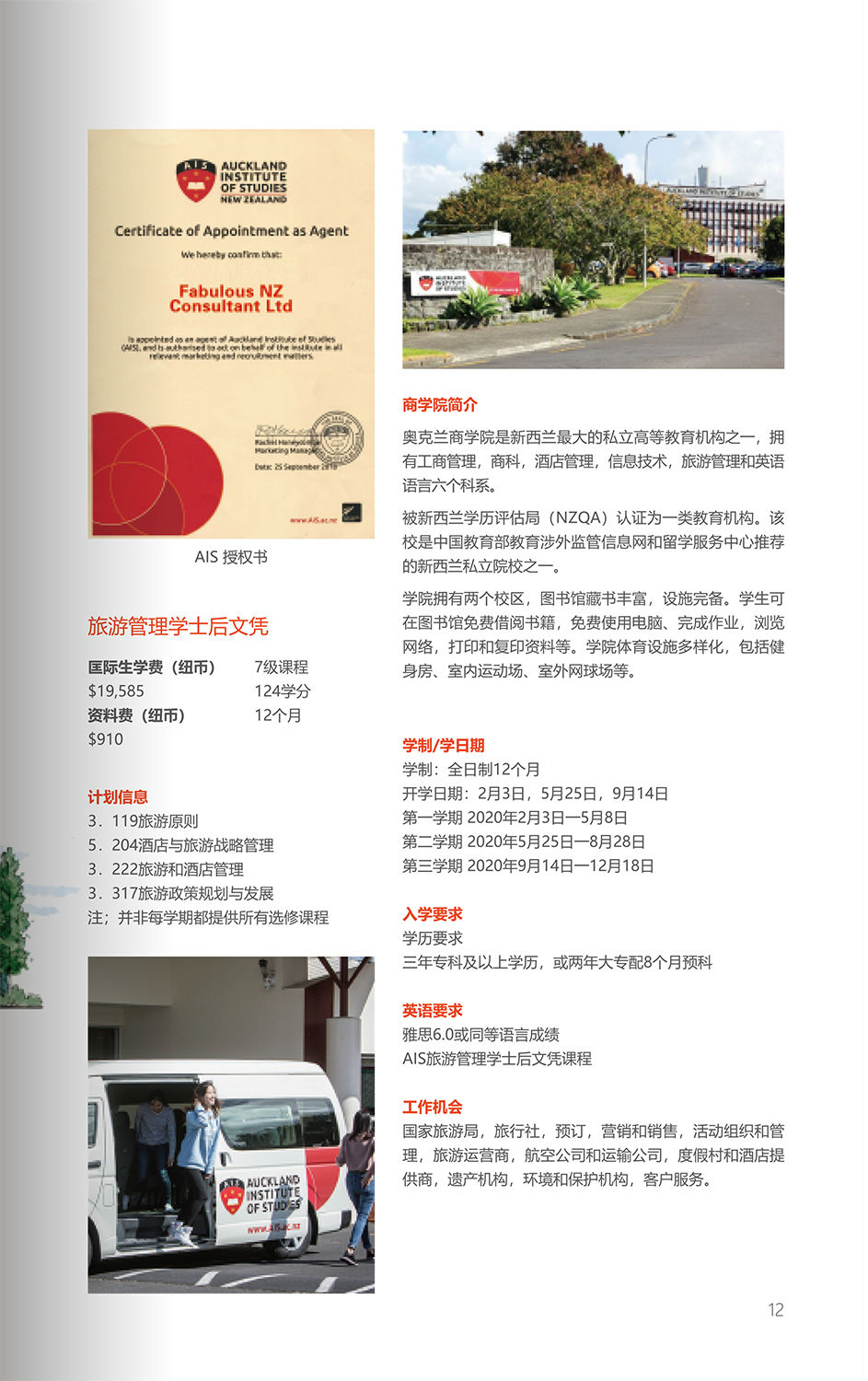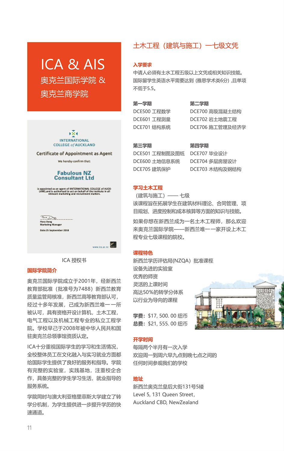 专业学校:奥克兰商学院(专科2年制,本科3年制)