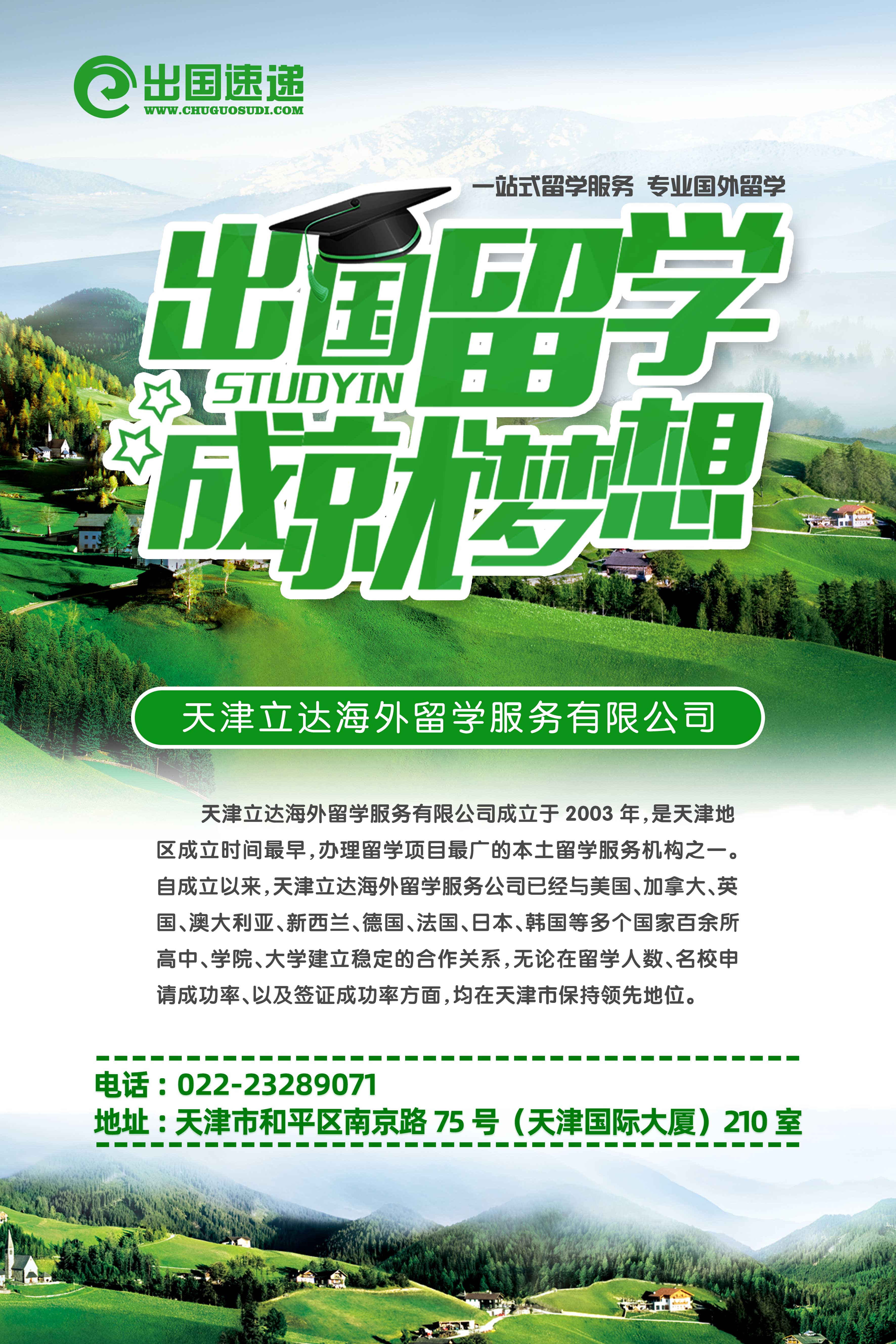 简介天津立达海外留学服务有限公司成立于2003年,是天津地区成立时间最早,办理留学项目最广的本土留学服务机构之一。是教育部批准的通过教育部留学资格认证(教外综资认字【2003】264号 )的合法留学服务机构。