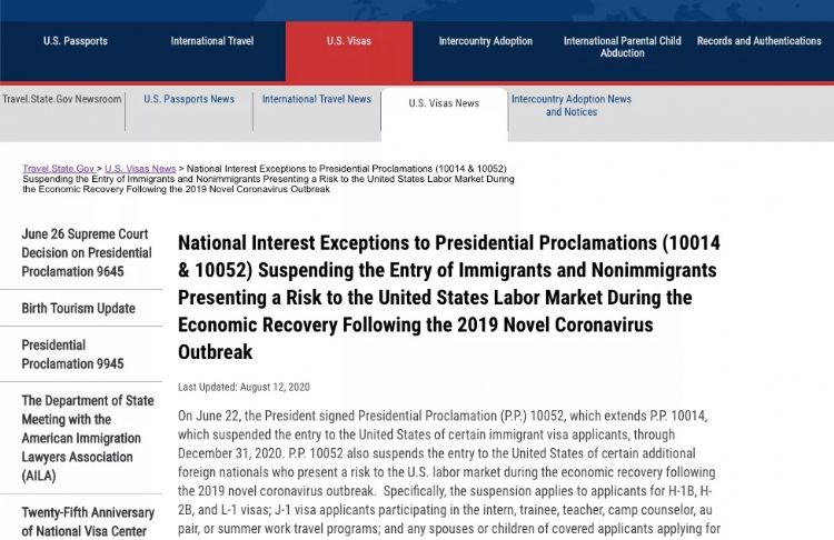 还记得特朗普政府政府在今年6月22日时签署行政令,暂停今年年底之前H1B签证持有人入境美国?该限制措施于6月24日生效,一直持续到年底。