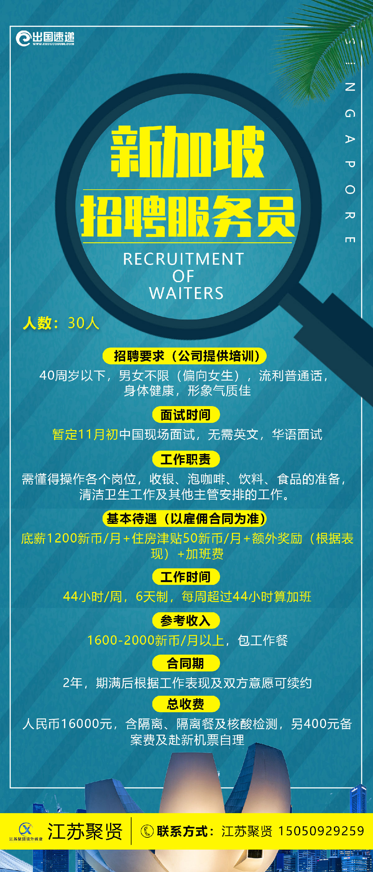 总收费:人民币16000元,含隔离、隔离餐及核酸检测,另400元备案费及赴新机票自理