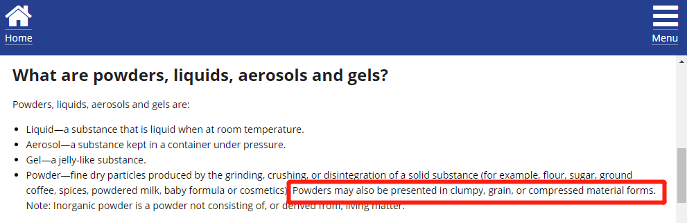 澳洲机场实行的规定内,将对随身行李中的粉末类物品进行了严格的控制。