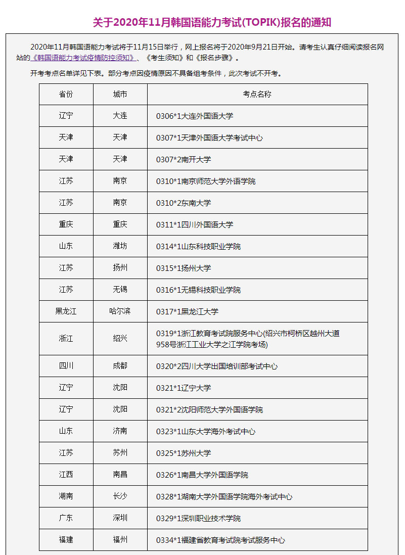 9月15日,中国教育部考试中心发布通知,韩国语能力考试(TOPIK)将于11月15日举行,该考试支持网上报名,报名从9月21日开始。