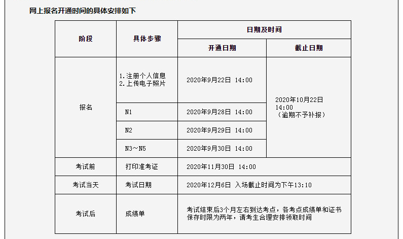 教育部网站公告称,2020年12月日本语能力测试将于12月6日举行, 9月22日起,开始网上报名,大陆学生报名唯一有效证件是第二代身份证原件。