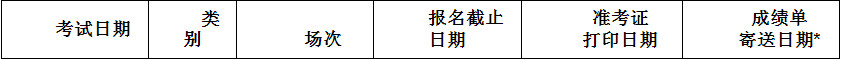 具体各类考试时间及考点请见下表:
