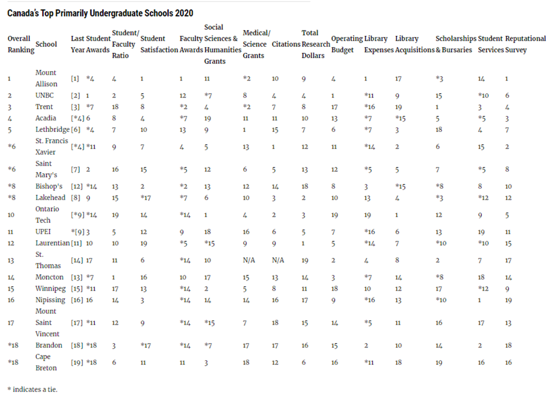 2020麦考林杂志加拿大大学排名