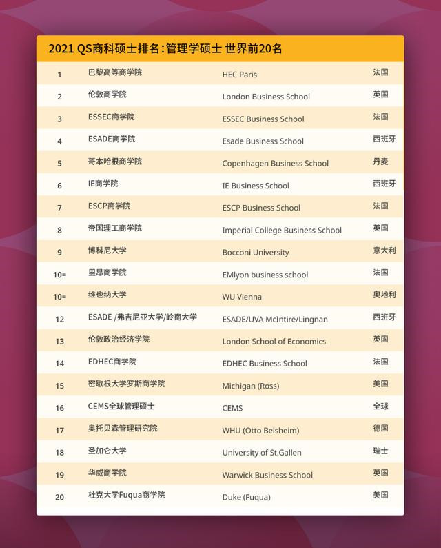 2021 QS 全球商科硕士排名会是一个很重要的参考数据。