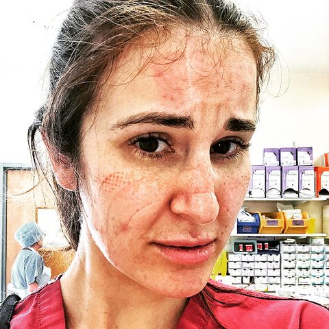 01医护人员摘下口罩后,满是压痕与勒痕,疲惫的状态令人心疼。