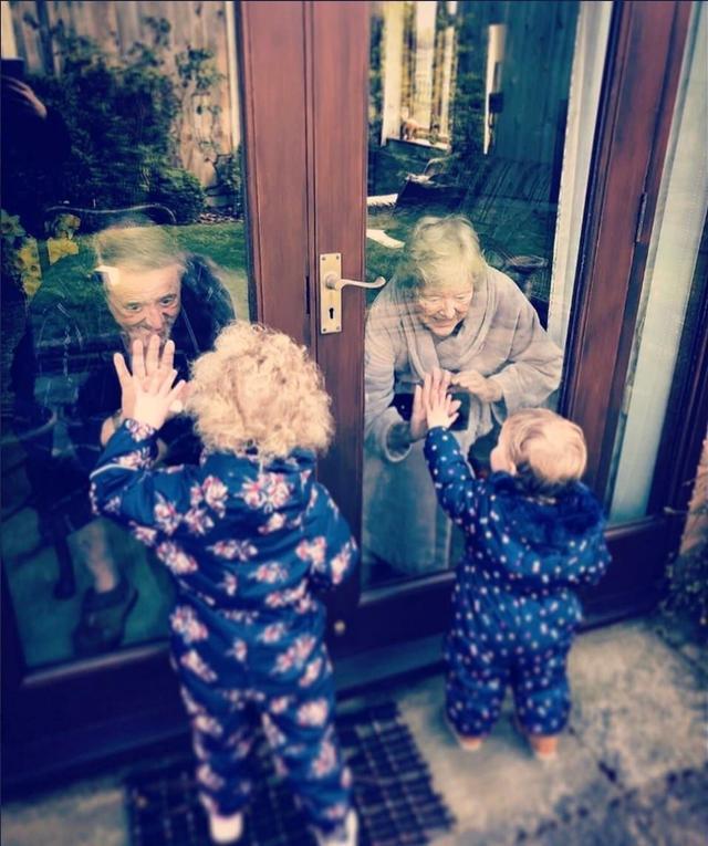 03祖孙两代人不能近距离亲密接触,浓浓的思念只能透过玻璃门传达。