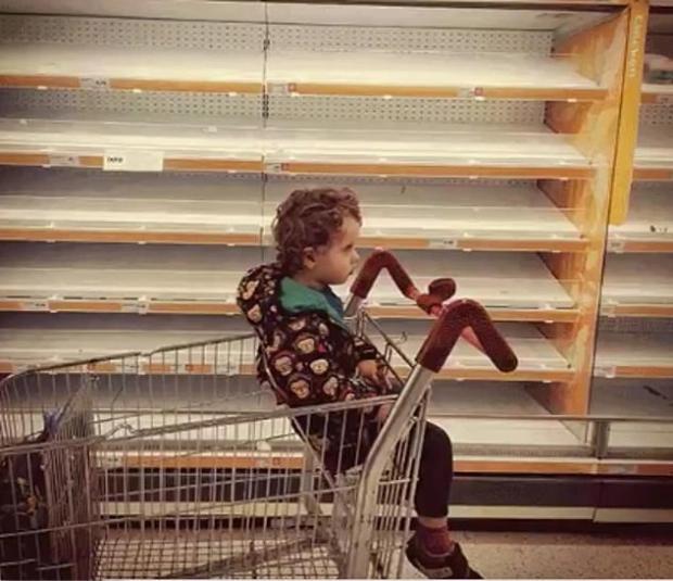 06扫荡一空的超市货架,透出了一丝令人恐慌的氛围。