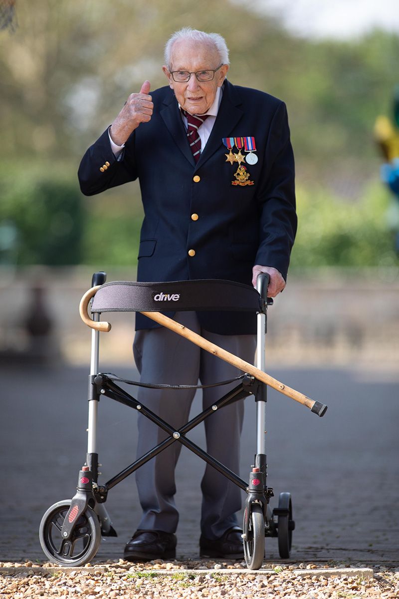 08疫情期间为英国国民保健署募得巨额善款的英国百岁老兵汤姆摩尔爵士。