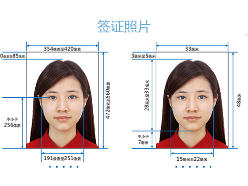 签证照片要求都是彩色,白底或浅底色,头发不要遮挡眉毛和脸,遮脸显瘦不要用在这儿,尽量露出耳朵,嘴唇闭合不露牙,照片不允许拉伸,用优质相纸同时像素要够。