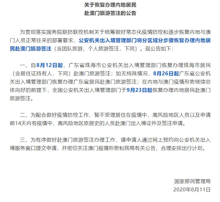 近日,国家移民管理局发布了一则令人激动欢喜的通知——澳门签注即将全面开放。