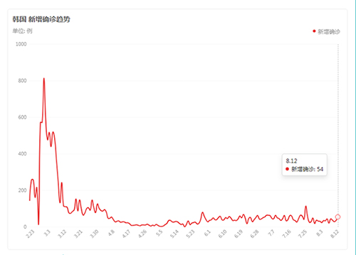 8月12日,韩国新冠疫情新增确诊54人,新加坡新增42人。