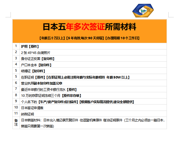 日本(个人、多次、探亲、商务、草表)