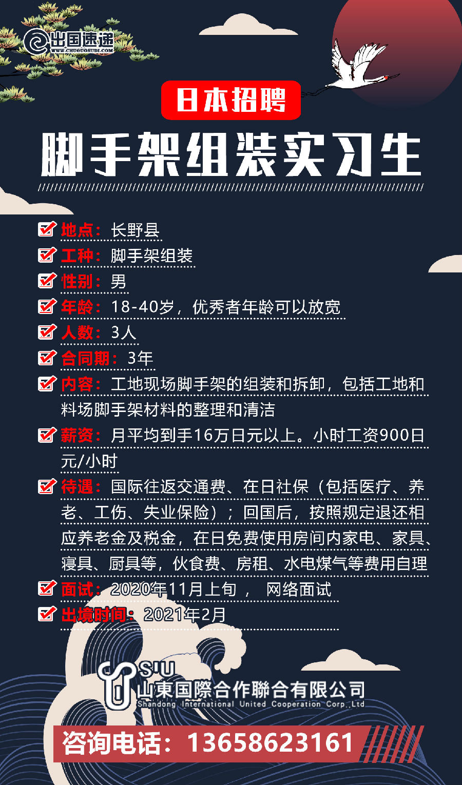 日本招脚手架组装实习生
